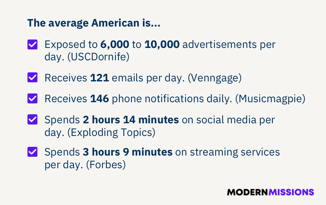 Missionaries are finding it harder and harder to break through all of this noise.