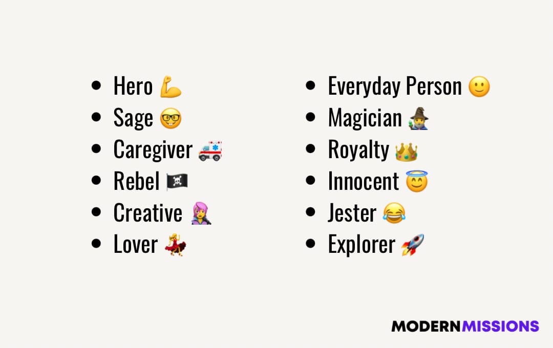 These are Brand Archetypes and they are one of my favorite tools. When you pick a Brand Archetype and stick to it it keeps you organized. Added bonus: you sound like a real person (which can be harder than you think online).